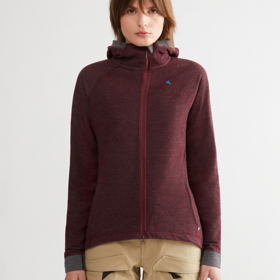 Hödur is a light, breathable and warming midlayer designed for year-round hiking and trekking. With a relaxed fit to provide greater freedom of movement and ventilation during longer adventures. The Hödur Hooded Zip is constructed from four elements. Water-resistant polyester for protection, polyamide for stretch, wool for warmth and elastane for flexibility. All in softly brushed single jersey close to the skin and a high loft knitted structure on the outside, providing the perfect combination of breathability, warmth and durability. It features a slanted front zip to avoid chin abrasion, a snug hood that fits under a shell or helmet, and two zipped hand pockets with wool lining for added comfort.